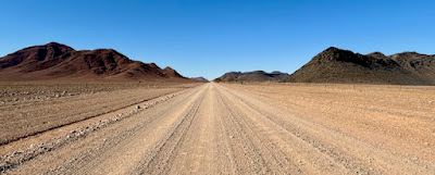 The road goes on and on in the desert.